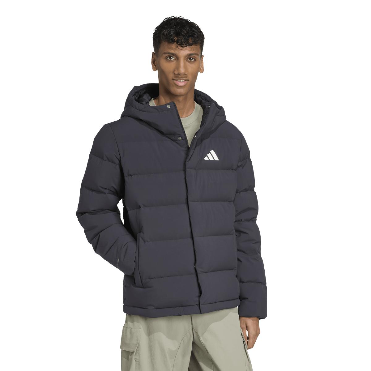 Conquer the cold with the hooded jacket adidas Helionic, combining lightness, warmth and protection for all your outdoor adventures.